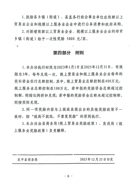 关于印发《武平县限上贸易业和规上服务业企业稳定增长扶持奖励办法(2023年修订)》的通知